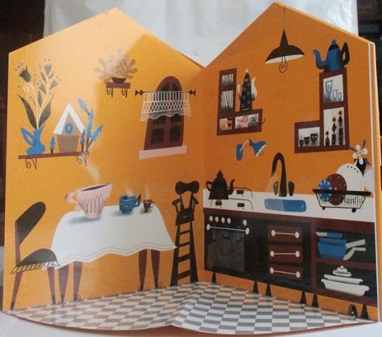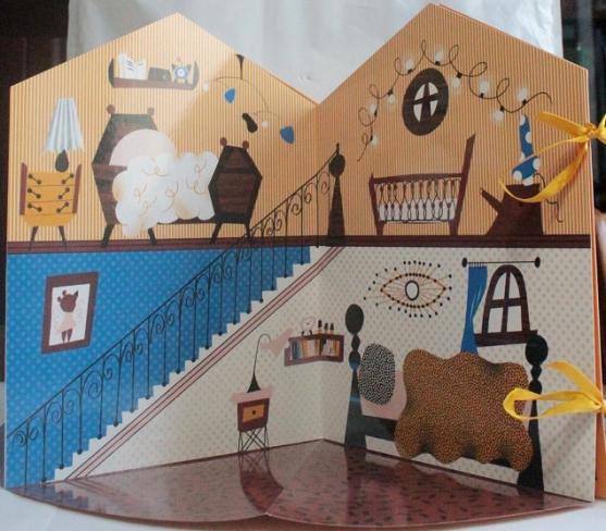 Le carrousel déploie 4 faces illustrées et l'on découvre 4 lieux emblématiques du conte : la vue extérieure de la maison des ours, la cuisine, la salle à manger et la chambre.