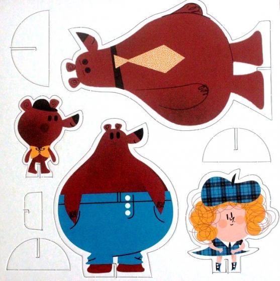 Sur une planche cartonnée, les personnages principaux de l'histoire : Boucle d'or, Papa Ours, Maman Ours et Petit Ours : sont prédécoupés et détachables.