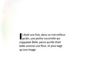 Belle la Coccinelle est belle comme une fleur et plus sage qu'une image. Un jour, elle se pose par mégarde sur le nez d'une sorcière qui lui jette un mauvais sort. Elle devient la plus vilaine et la plus méchante demoiselle du jardin...