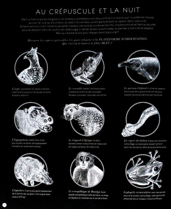 Grâce à une superposition ingénieuse des couleurs, ce livre offre au regard une fresque époustouflante et changeante de la nature et des animaux qui l’habitent, à toutes les heures du jour et de la nuit.