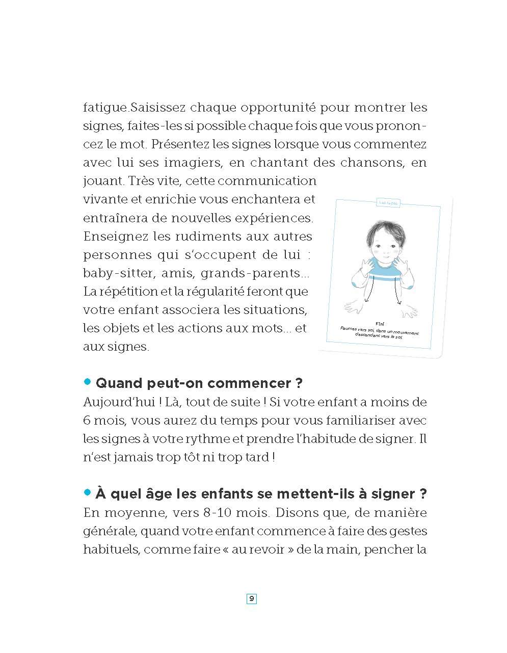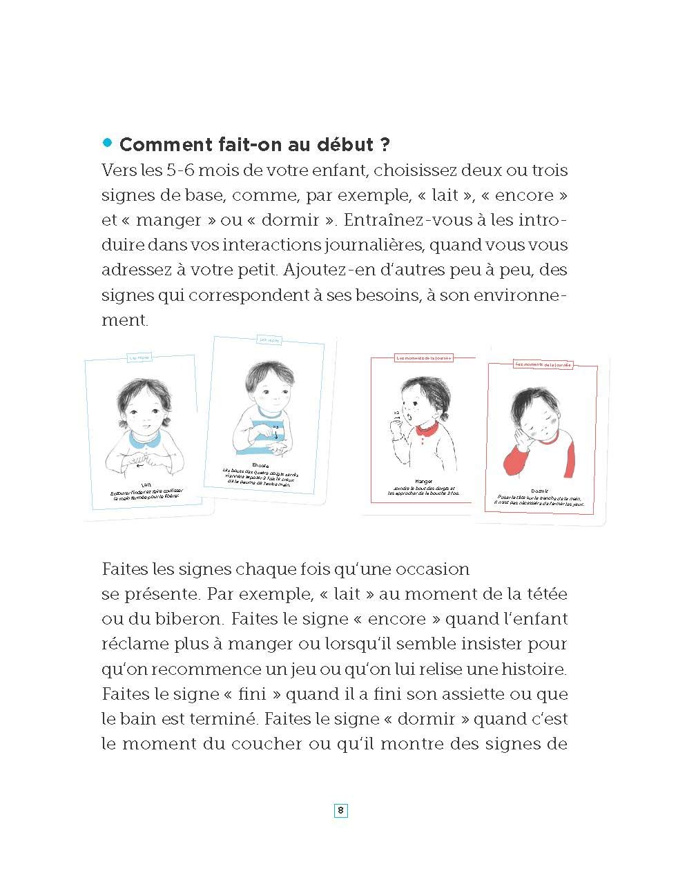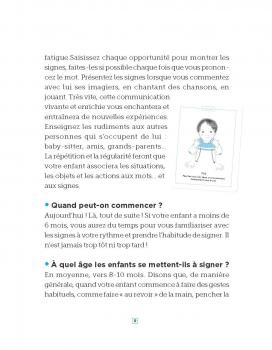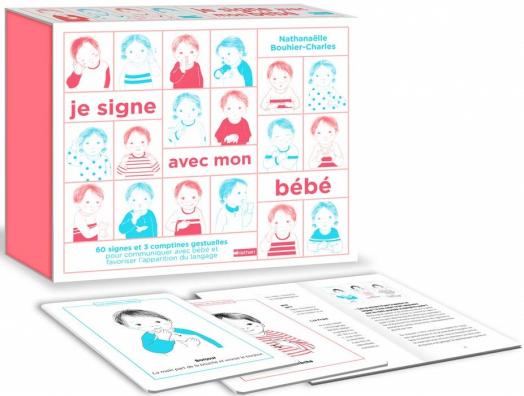 A l’iintérieur, les parents découvriront donc 30 fiches pour apprendre 60 signes essentiels et 3 comptines ainsi qu’un livret pour découvrir la langue des signes.
