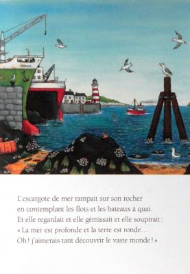 L'escargote de mer rampait sur son rocher en contemplant les flots et les bateaux à quai. Et elle regardait et elle gémissait et elle soupirait : " La mer est profonde et la terre est ronde… Oh ! J’aimerais tant découvrir le vaste monde ! " Voici la belle histoire de l'escargote qui voulait voir du pays et de son amie, la baleine gris-bleu, qui l'emmena faire un tour du monde sur sa queue.