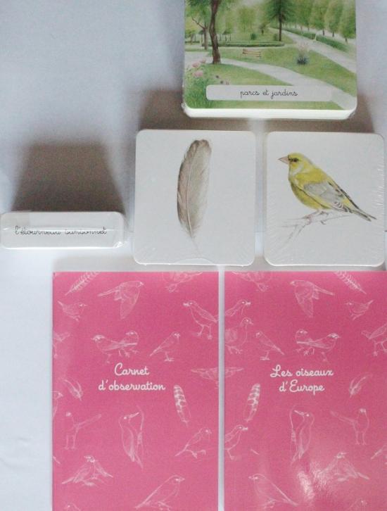 • 105 cartes d'identification, avec 30 oiseaux à classer par habitat (jardin, montagne, rivière...) et des plumes à associer.