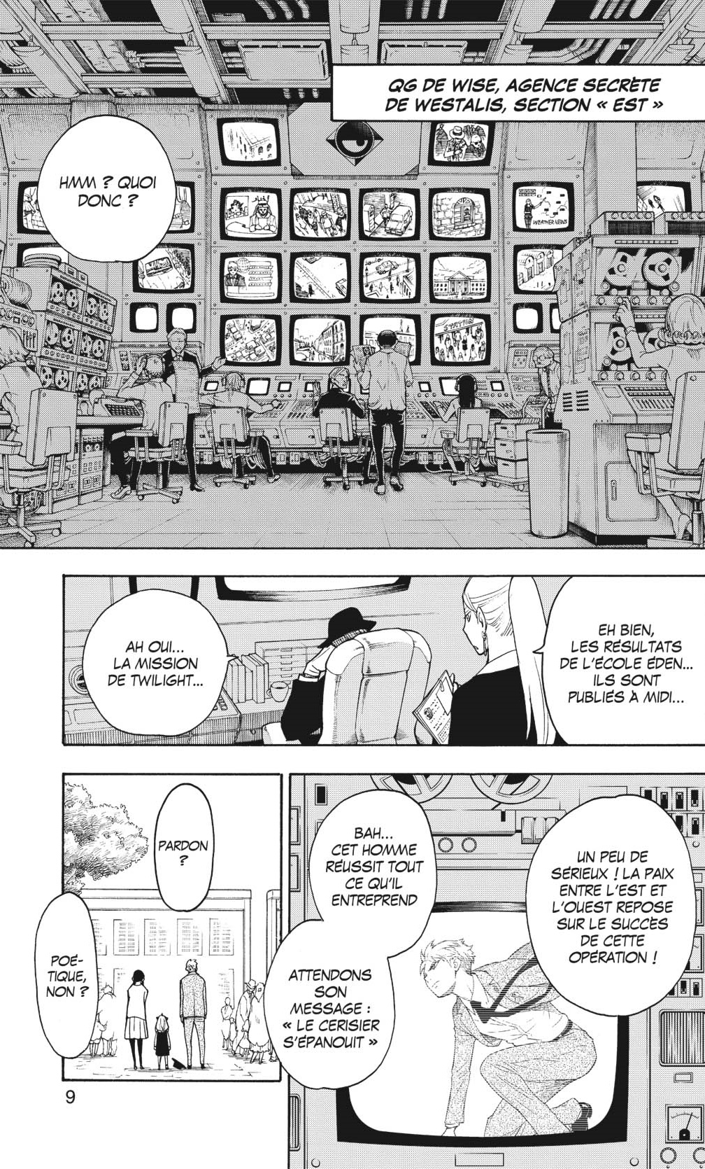 Deux nations voisines partageant une haine réciproque, une paix fragile menacée par des hommes politiques ambitieux... Tel est le décor de SPYxFAMILY, avec, en premier rôle, Twilight, espion de Westalis missionné pour éviter la guerre qui se prépare en coulisses. Accompagné d'Anya, sa (fausse) fille adoptive, et de Yor, sa (fausse) épouse et vraie tueuse, Twilight alias Loid Forger doit approcher le chef du parti Nation Unifiée. Le plan consiste à faire admettre la petite Anya à la prestigieuse école Éden, où se retrouvent les enfants de l'élite d'Ostania, puis de la faire figurer parmi les meilleurs élèves de l'école. Un objectif qui relève de l'impossible, à moins de déployer des trésors de ruse et d'ingéniosité... Mais n'est-ce pas là, justement, le cœur du métier d'espion ?